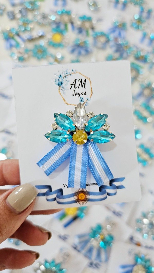Escarapela media flor navette cinta triple 3,8 x 4,5 cm