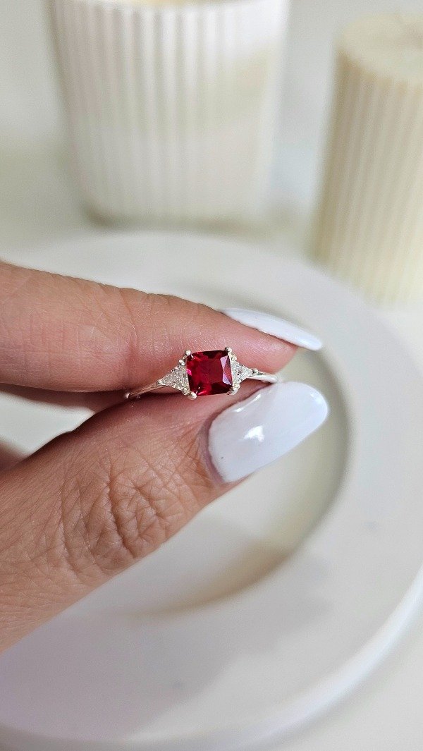 Anillo rojo cuadrado con cubic 18mm. Plata