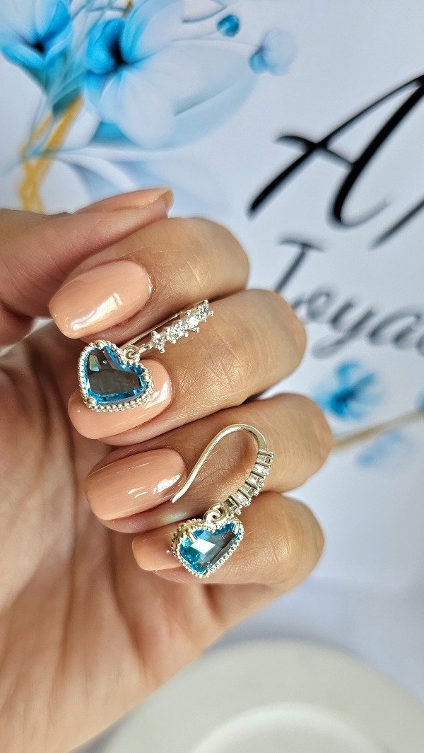Aroa colgantes con corazón celeste 2,5 cm. Plata