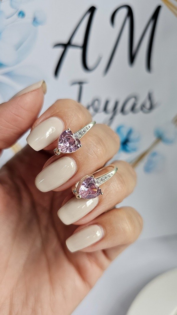 Aros brisura con cubic corazon rosa 2cm. Plata