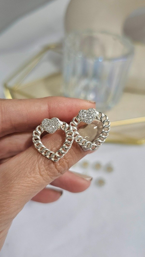 Aros pasantes con corazon en micropave 1,8cm. Plata